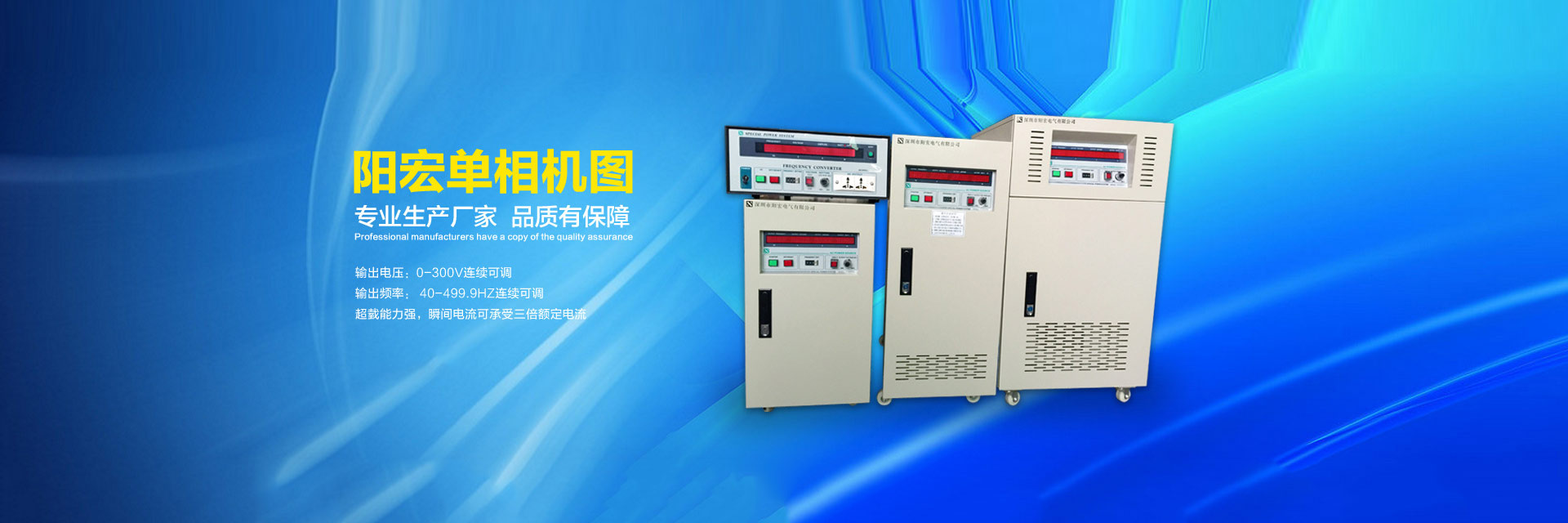 20年變頻電源制造品質(zhì)-陽(yáng)宏變頻電源為您提供5KVA變頻電源,10KVA變頻電源,20KVA變頻電源,30KVA變頻電源,45KVA變頻電源,60KVA變頻電源,75KVA變頻電源,深圳單相/三相/交流變頻電源等。 模擬式變頻電源,晶體管式變頻電源,可編程式變頻電源,單相大功率變頻電源,三相大功率變頻電源是陽(yáng)宏電源股份有限公司的核心產(chǎn)品。深圳市陽(yáng)宏電氣有限公司隸屬臺(tái)灣陽(yáng)宏電源股份有限公司,是一家變頻電源開(kāi)發(fā)、研制、生產(chǎn)、銷(xiāo)售和服務(wù)的高新技術(shù)企業(yè)。其大陸工廠:深圳市陽(yáng)宏電氣有限公司,是臺(tái)灣陽(yáng)宏電源股份有限公司在中國(guó)大陸一家分公司,地址:深圳市寶安區(qū)觀瀾街道觀瀾高新科技園區(qū)。 臺(tái)灣陽(yáng)宏電源股份有限公司創(chuàng)建于1995年,目前除了臺(tái)北公司以外,在中國(guó)的廣東深圳設(shè)有分公司,工廠擁有許多的先進(jìn)設(shè)備。具有年產(chǎn)各種電子儀器電源設(shè)備20000臺(tái)以上,工廠有嚴(yán)格的生產(chǎn)能力,強(qiáng)大的開(kāi)發(fā)技術(shù)的管理制度,可以接受新高技術(shù)產(chǎn)品的開(kāi)發(fā)與研制。